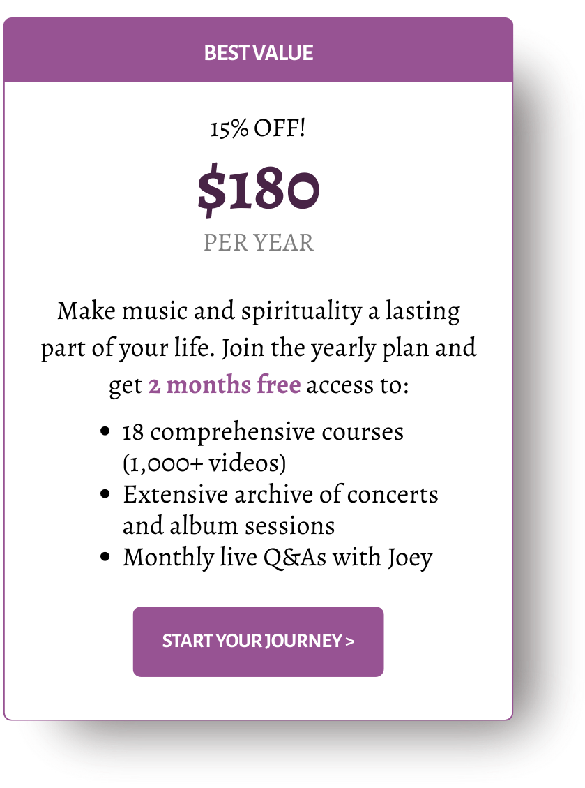 Join thousands of fans and students of Joey's music and teachings who gather for live webinars, Q/A sessions, special online events, live concerts, and on the online forum.